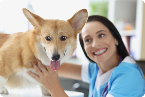 Portrait confident female veterina – rian examining dog hospital